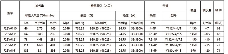 2.上列性能基于進(jìn)氣溫度20℃,進(jìn)水溫度15℃,排氣壓力1013hpa的條件,被吸入氣體為飽和空氣。(飽和空氣是指在對(duì)應(yīng)吸入狀態(tài)下,其相對(duì)濕度為100%的濕空氣。)3.抽氣速率、軸功率性能允差10%。